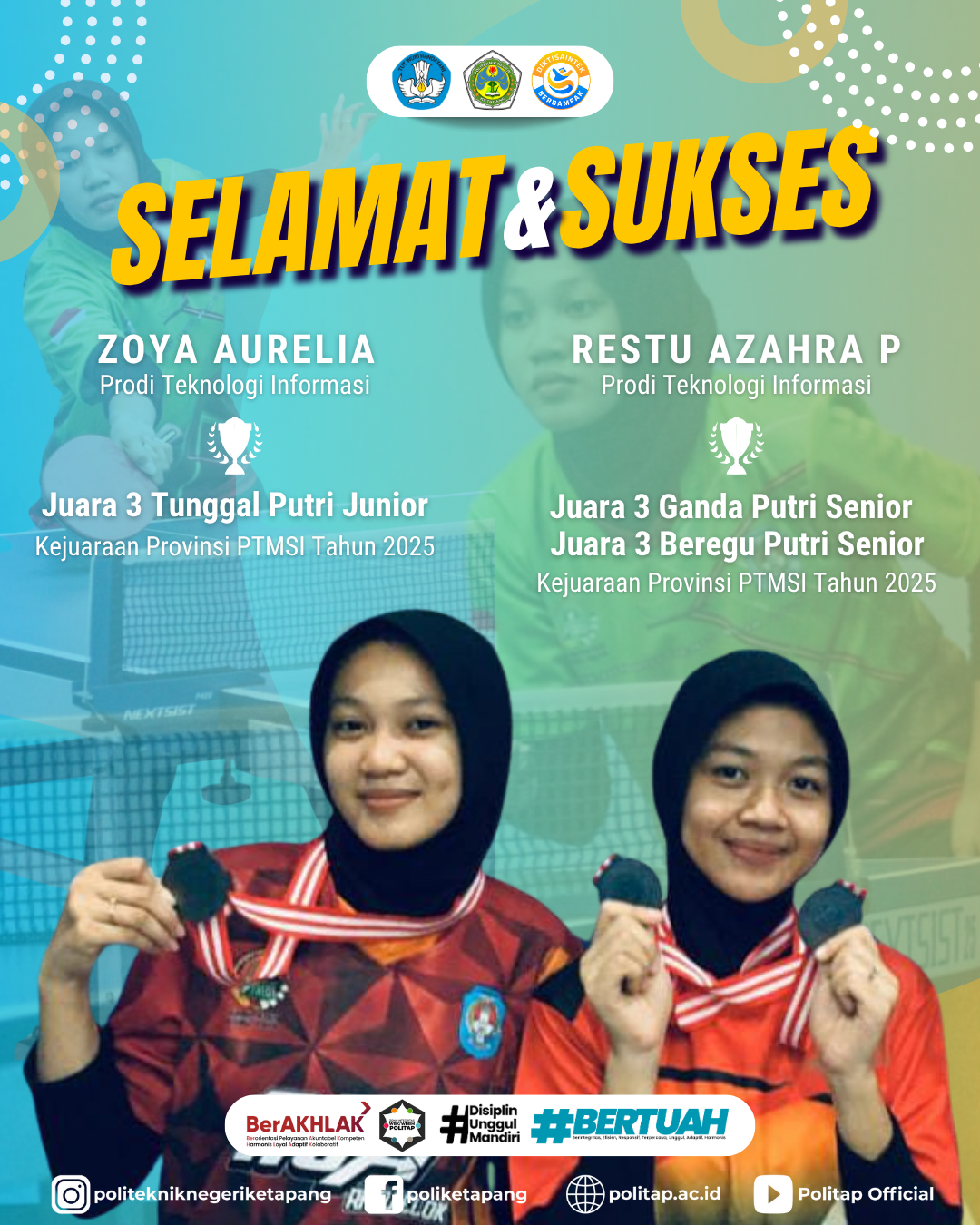 “Kami bangga atas capaian Zoya dan Restu. Prestasi ini menjadi bukti bahwa mahasiswa Politap memiliki potensi luar biasa di berbagai bidang. Kampus selalu mendukung penuh setiap mahasiswa untuk berkembang, baik dalam akademik maupun minat dan bakat,” ujarnya.