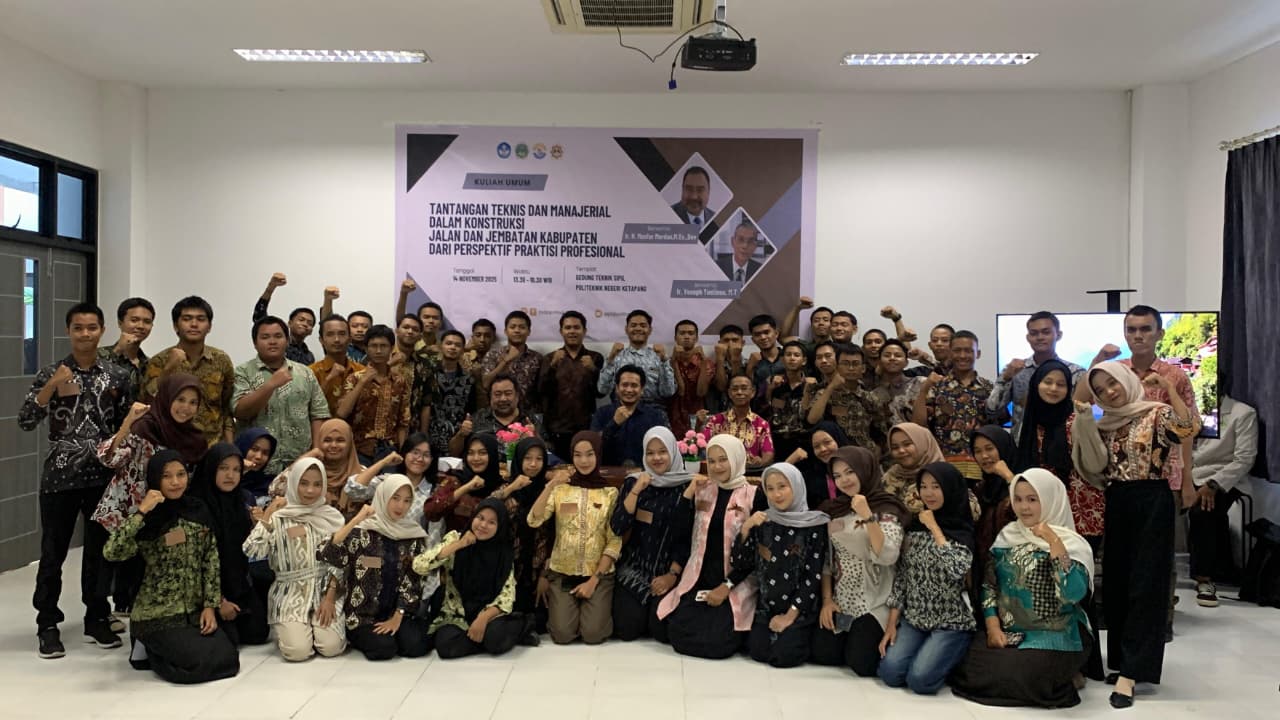 Ketapang, 14 November 2025 – Program Studi Teknologi Rekayasa Konstruksi Jalan dan Jembatan (TRKJJ) Politeknik Negeri Ketapang sukses menyelenggarakan Kuliah Umum bertajuk “Tantangan Teknis dan Manajerial dalam Konstruksi Jalan dan Jembatan Kabupaten dari Perspektif Praktisi Profesional”. Kegiatan ini menjadi ajang penting bagi mahasiswa untuk mendapatkan gambaran nyata mengenai dunia konstruksi daerah, khususnya pada sektor jalan dan jembatan yang memiliki tingkat kompleksitas tinggi.